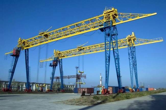 - перегрузочные краны, рассчитанные на рабочий вес в диапазоне 3 — 50 т; высота подъёма составляет 16 м с длиной пролёта в 10 – 40 м;